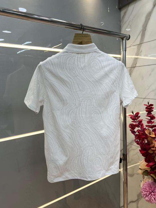 Calvin Klei n White Premium Imported 240 GSM Interlock Lycra Fabric Polo Tshirt with Emboss Logo and Allover Monogram Print 4071