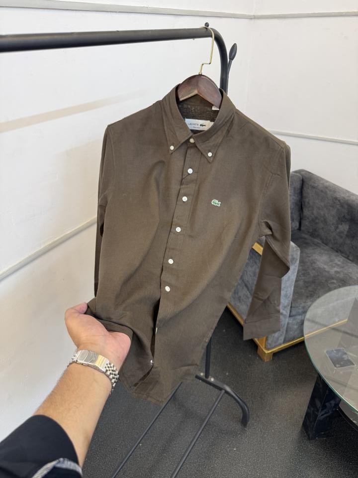 Lacost e brown pure linen fabric imported shirt