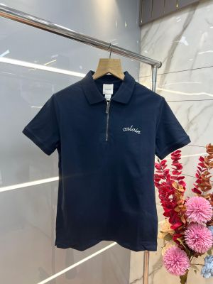 Calvin Klei n Navy Premium Imported 240 GSM Interlock Lycra Fabric Polo Tshirt with Embroidered Logo and Zip Style 4065
