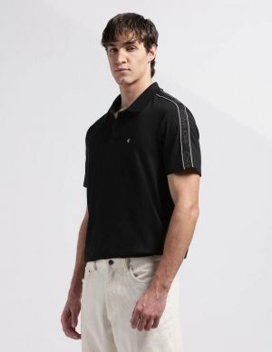 Calvin Klei n Black Premium Imported 240 GSM Interlock Lycra Fabric Polo Tshirt with Shoulder Design and Emboss Logo 4070