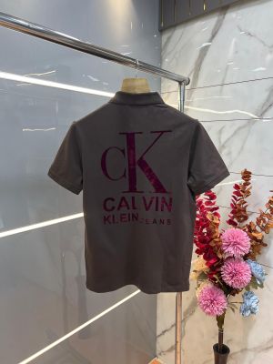 Calvin Klei n Black Premium Imported 240 GSM Interlock Lycra Fabric Polo Tshirt with Front Design and Emboss Logo 4068